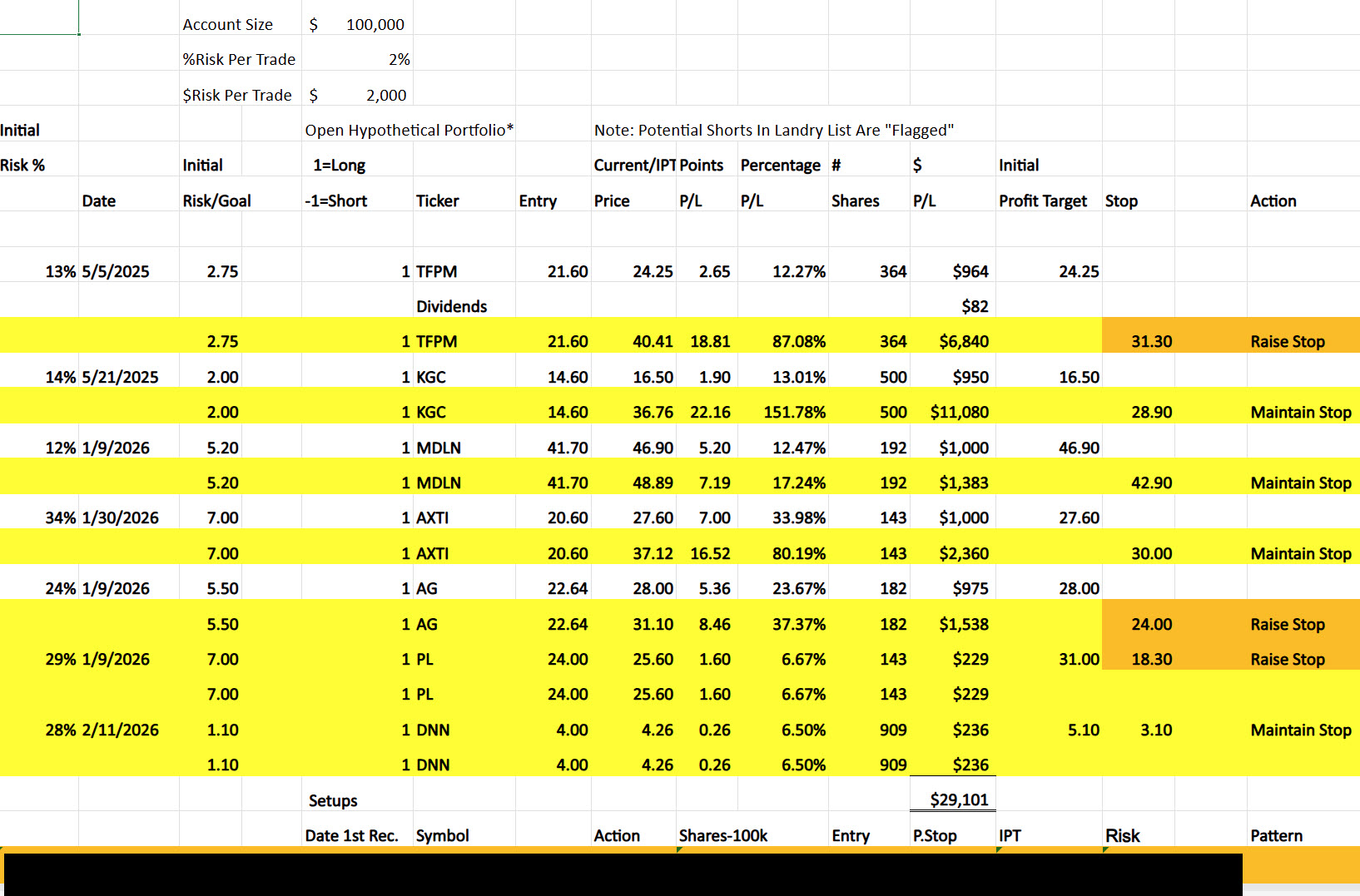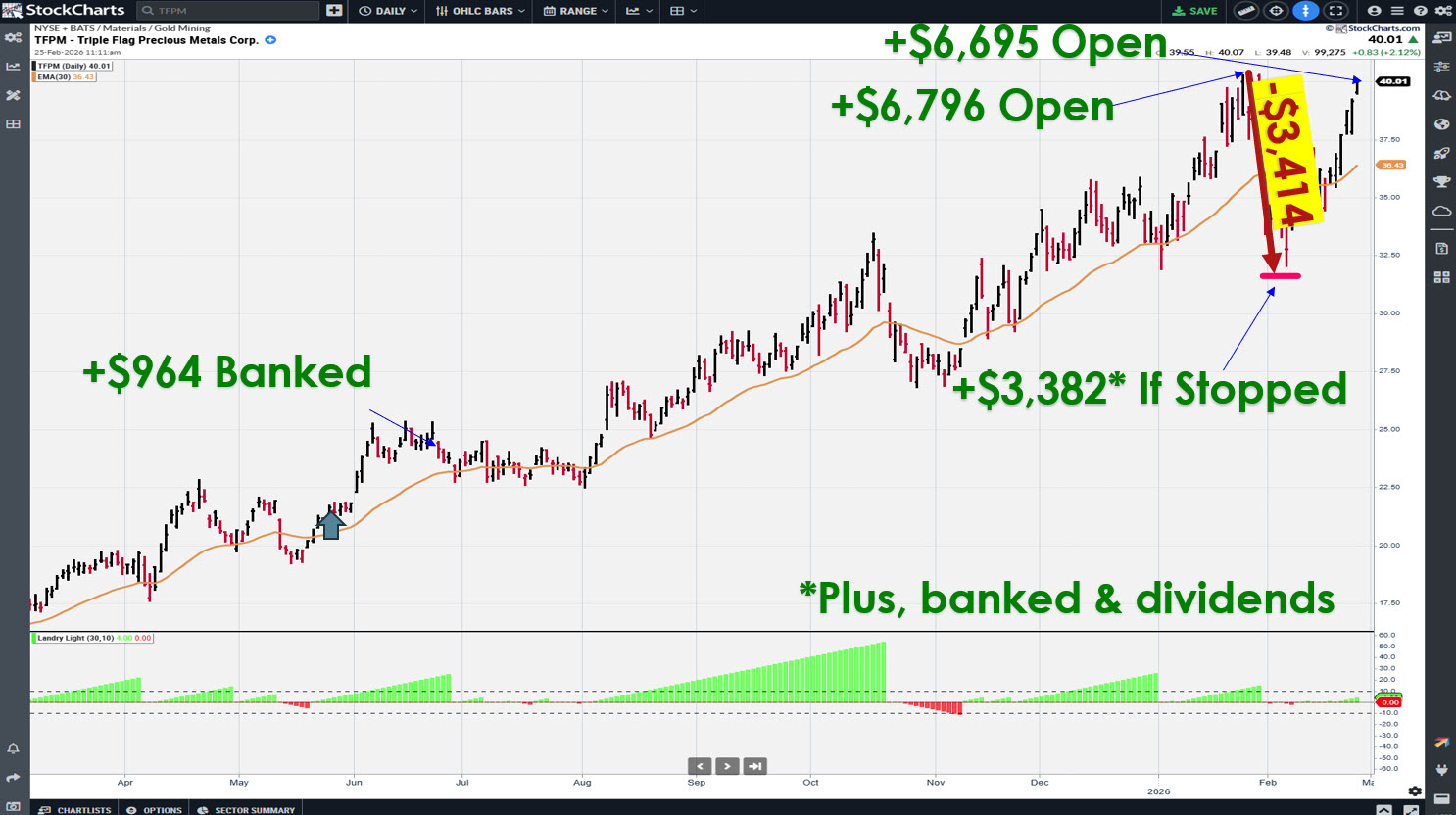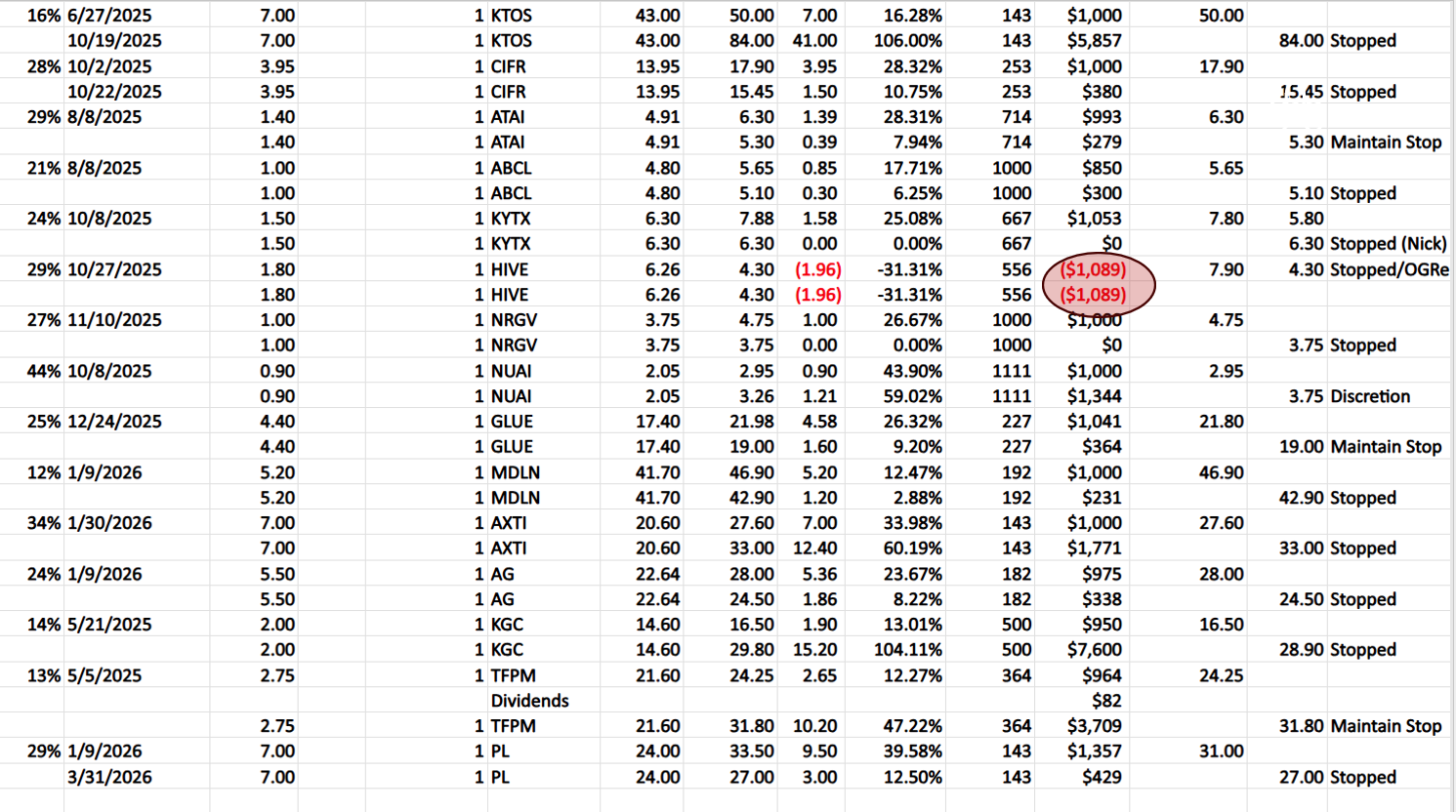 Speaking of May, one of this week’s 26 Trading Resolutions for 2026 was to focus on the charts and only the charts. If you adhered to the adage “Sell in May and go away” (avoid trading during the summer months), you would have missed TFPM and KGC, two of the biggest winners in the portfolio, up 87% and 151%, respectively. Paying attention to the news and the political landscape could have kept you out of other big winners in 25/26.